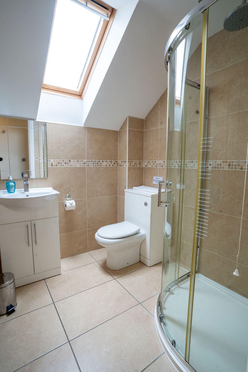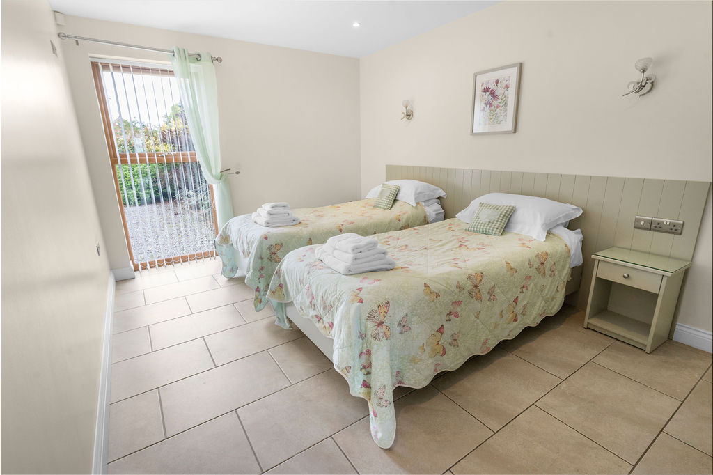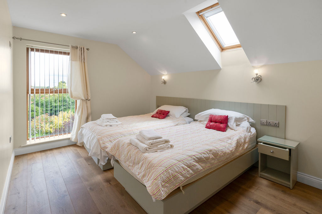 - Bedroom 3: located upstairs with twin beds, fitted wardrobe, and dressing table, en-suite shower room.
