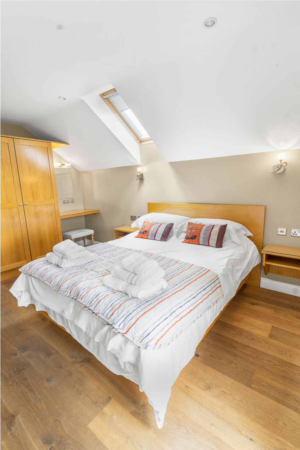 - Bedroom 2: located upstairs, has a double bed, fitted wardrobe and dressing table, en-suite shower room.